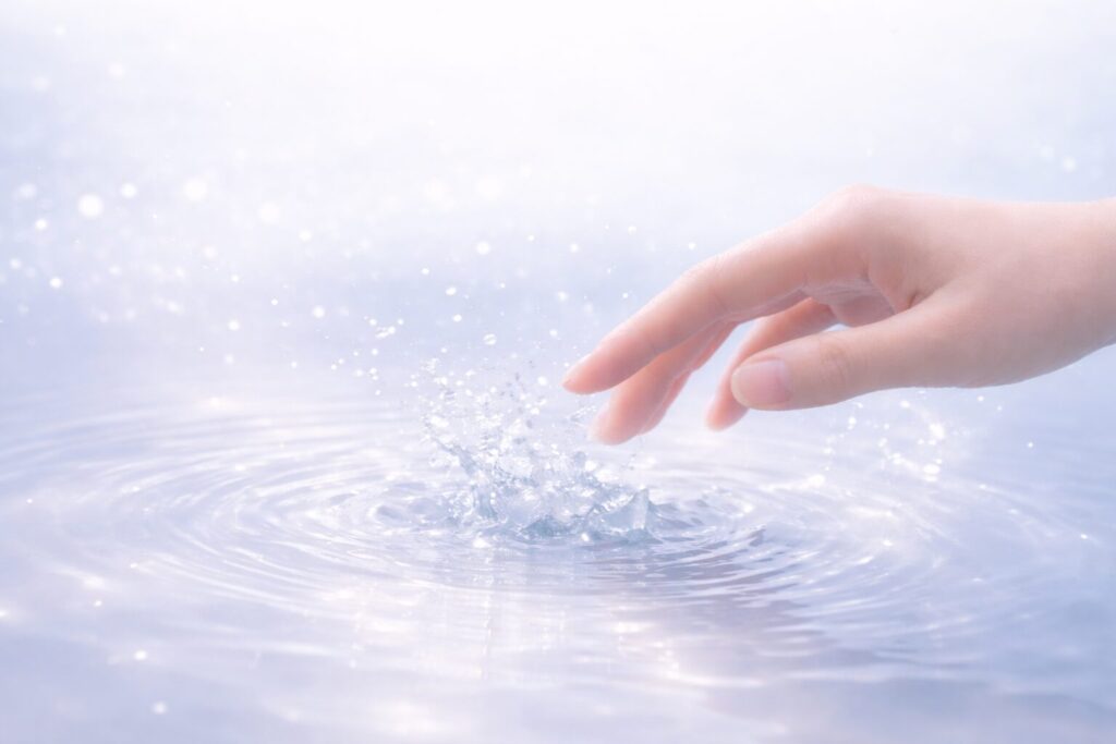 やわらかな光を映した静かな水面。40代の敏感肌が透明感を意識したスキンケアに向き合うイメージ